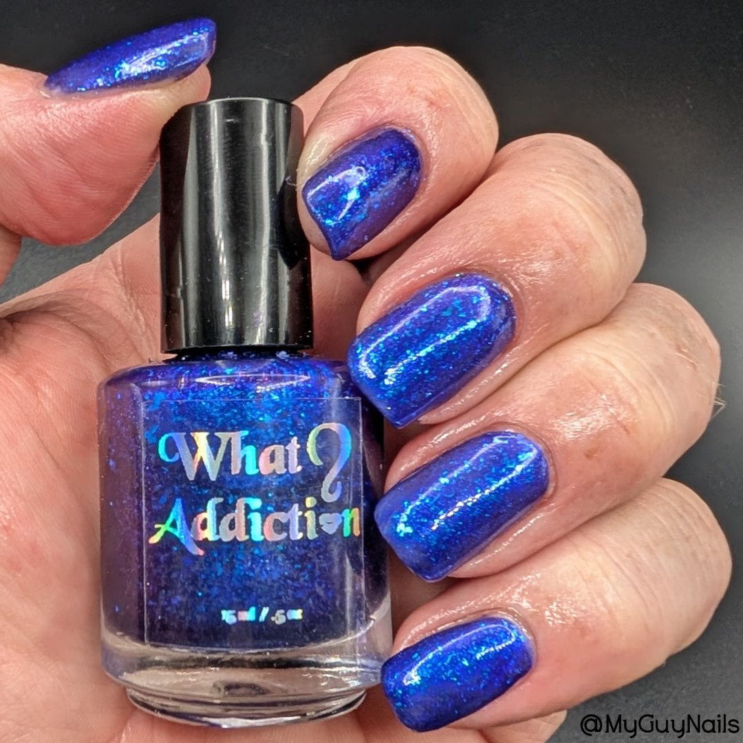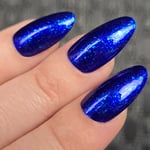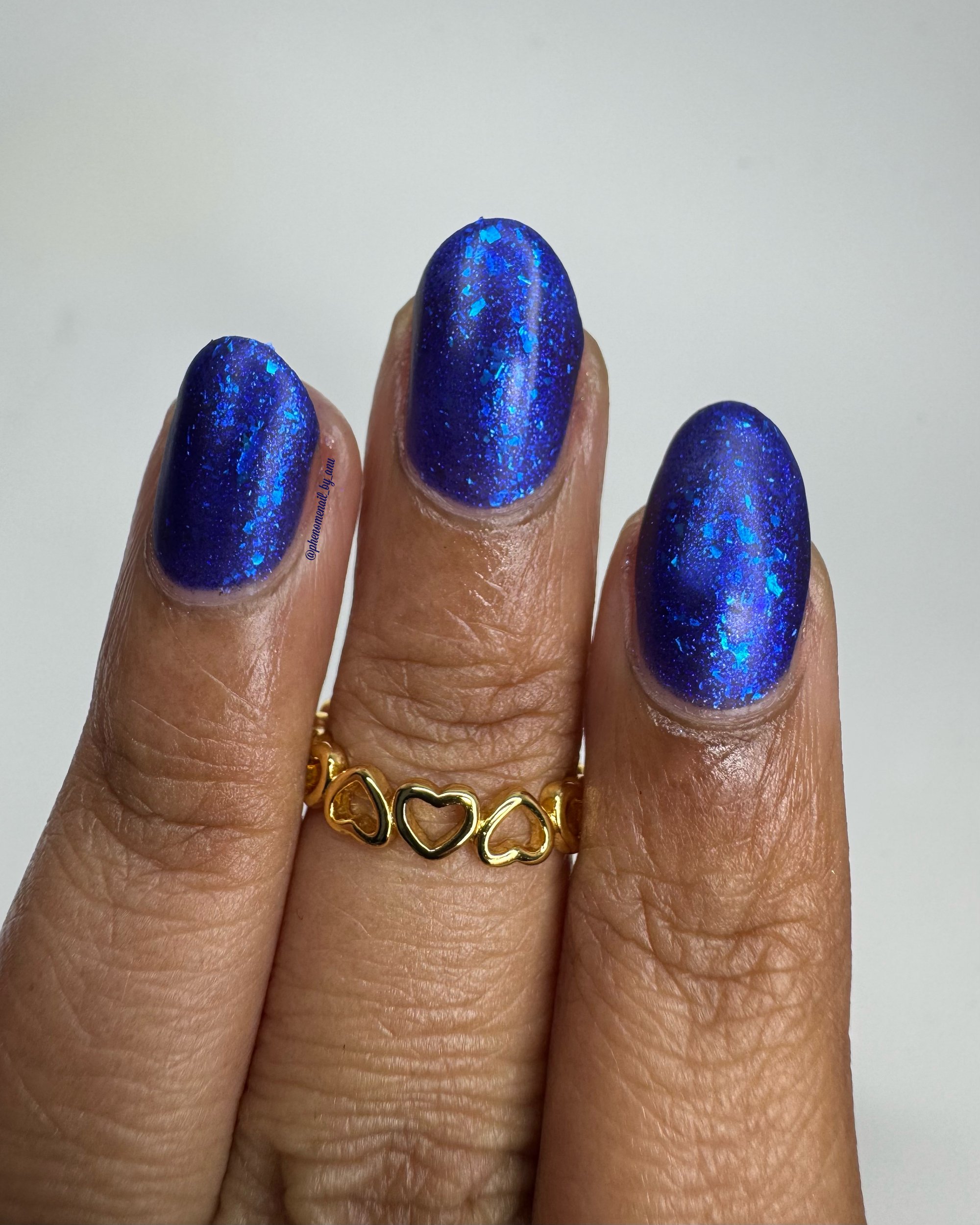 A jewel toned cobalt blurple base with A blurple shimmer and blurple flakes.