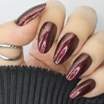 A coppery burnt orange in a cherry cola base filled with flakes that flash in red, orange, fuchsia, blue, gold, purple and a sprinkle of micro purple glitter.
