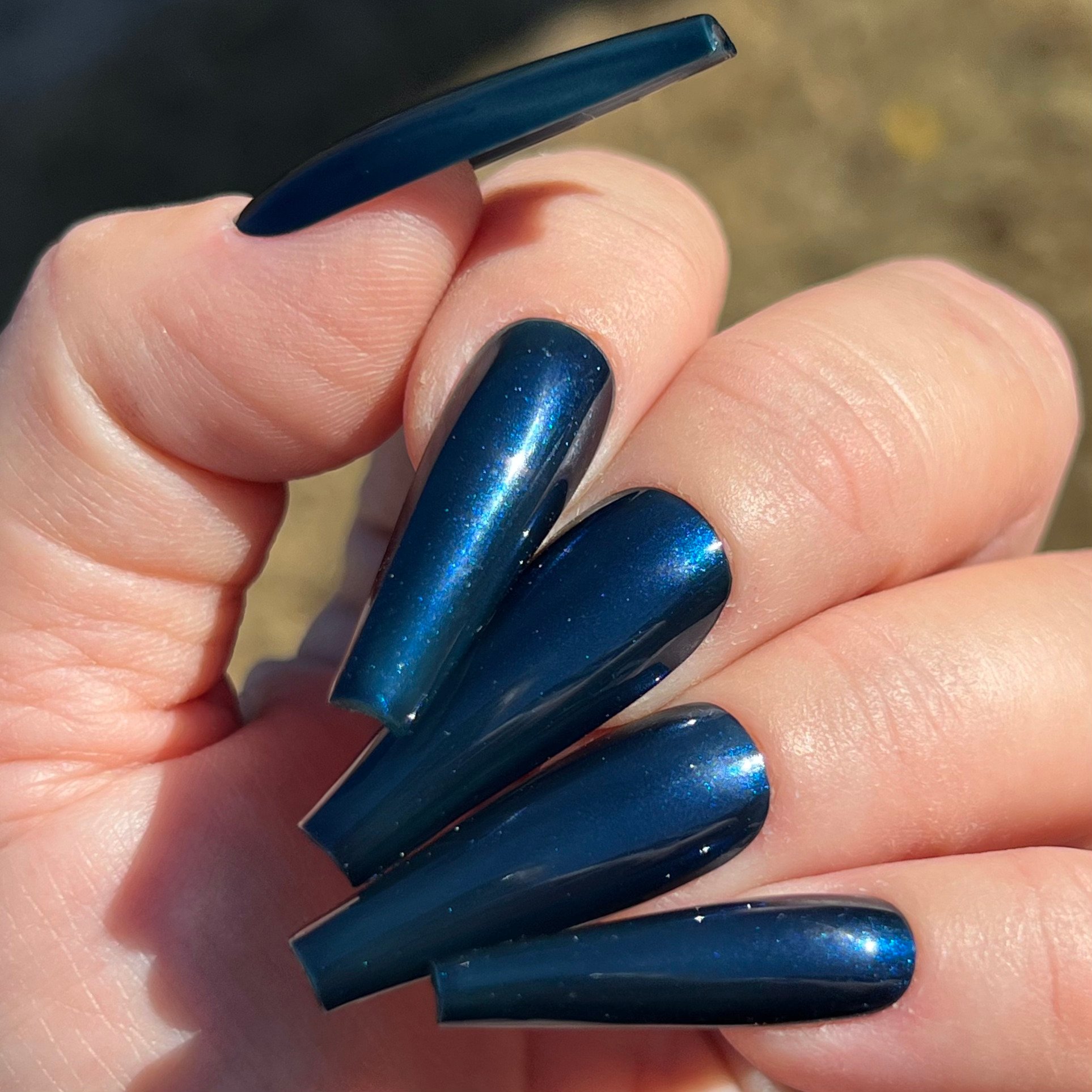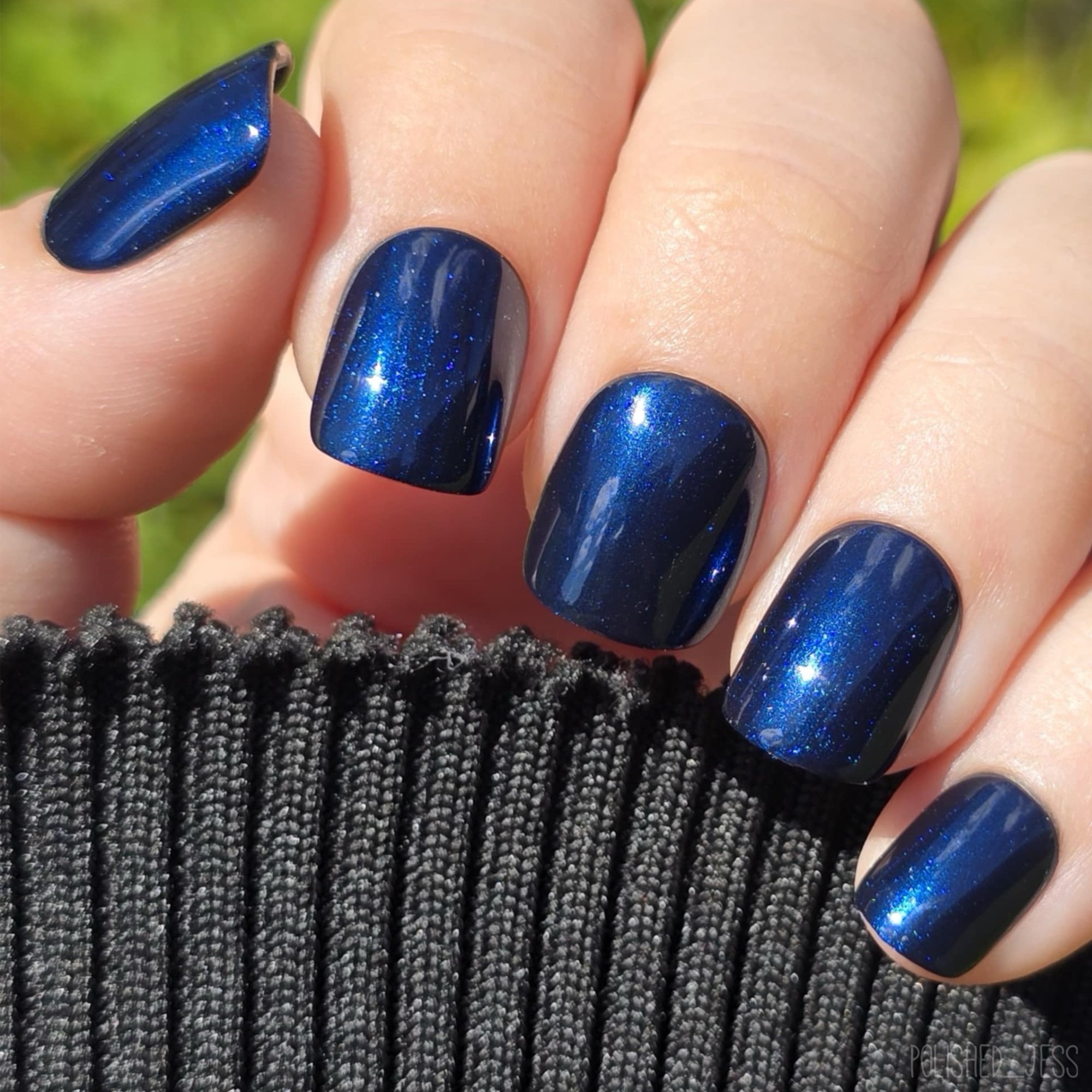 A blackened blue base filled with blue shimmer.